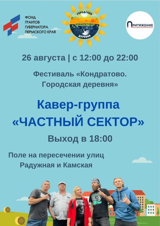 ☝🏻К чему это мы? А к тому, что недавно в Кондратово образовалась [club221792756|Кавер группа «Частный сектор»] . 🤟🏻 Выступив на проекте «Культурная среда», они сразу полюбились кондратовцам🤩. Пропустили? Или хотите еще? Тогда ждем вас 26 августа на фестивале «Кондратово. Городская деревня». Выход группы в 18:00.
